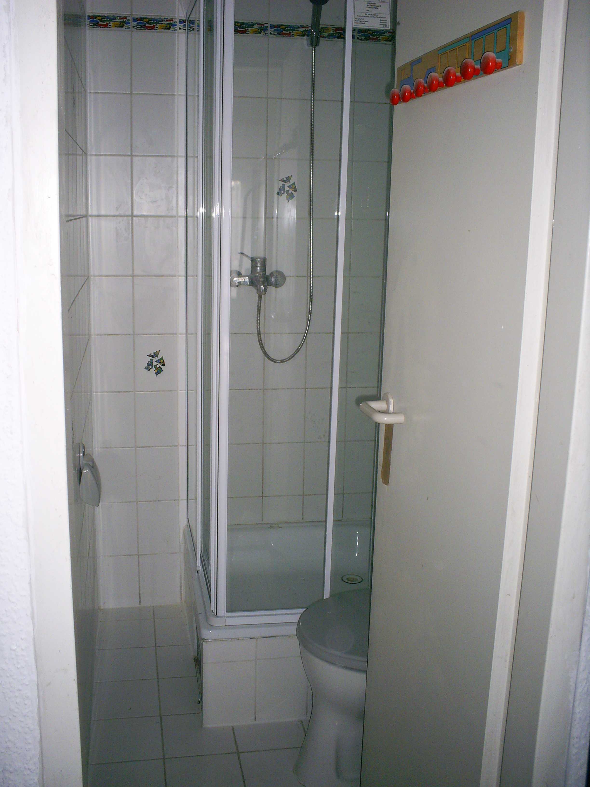 Zur unteren Ferienwohnung gehört das große Bad nur wenige Schritte vom Haupthgebäude entfernt.