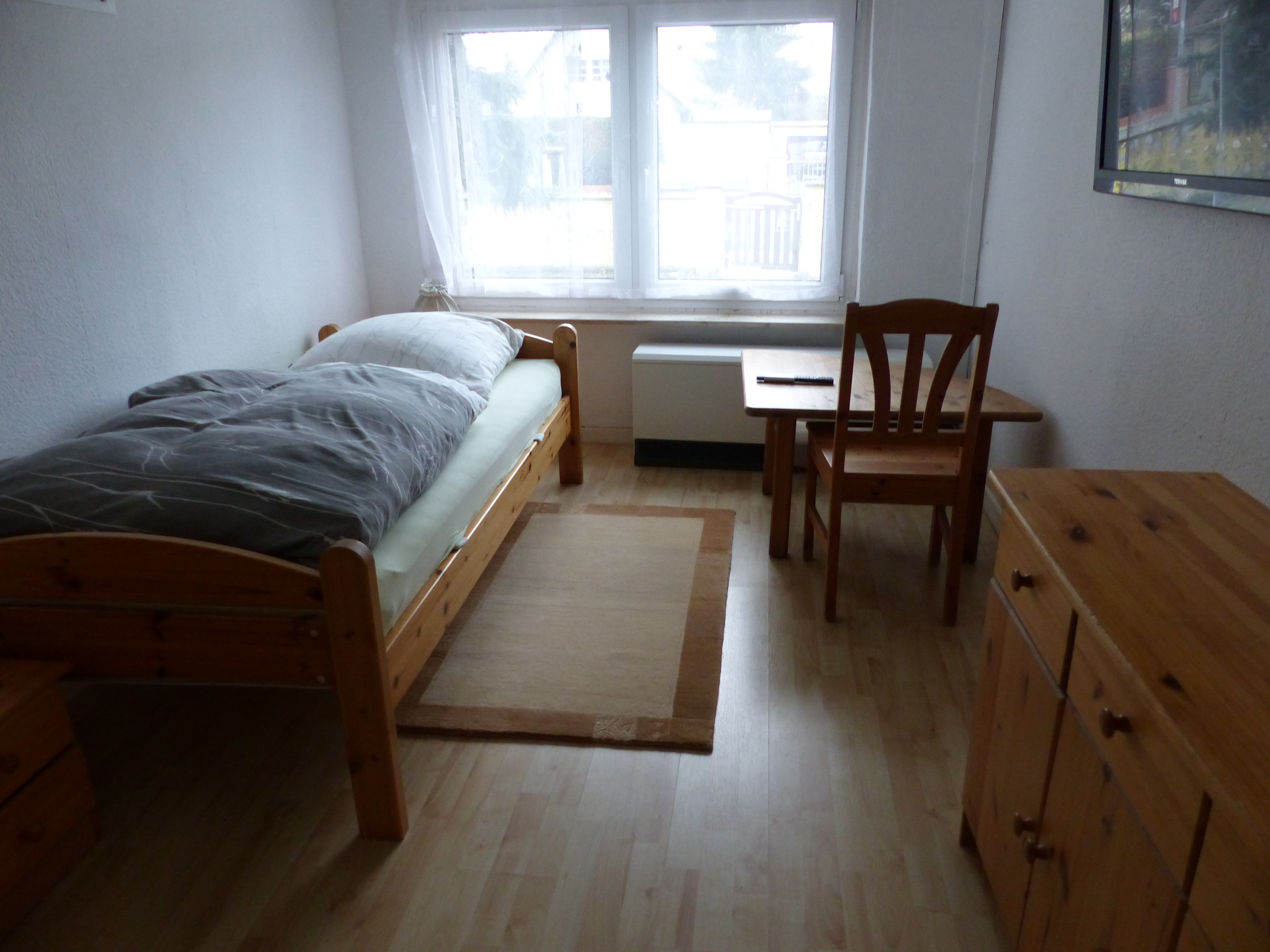 Wenn die untere Ferienwohnung nicht vermietet ist kann das untere kleine Zimmer, mit Fernseher, Dusche und WC für einen Wochenpreis von 120€ gemietet werden.